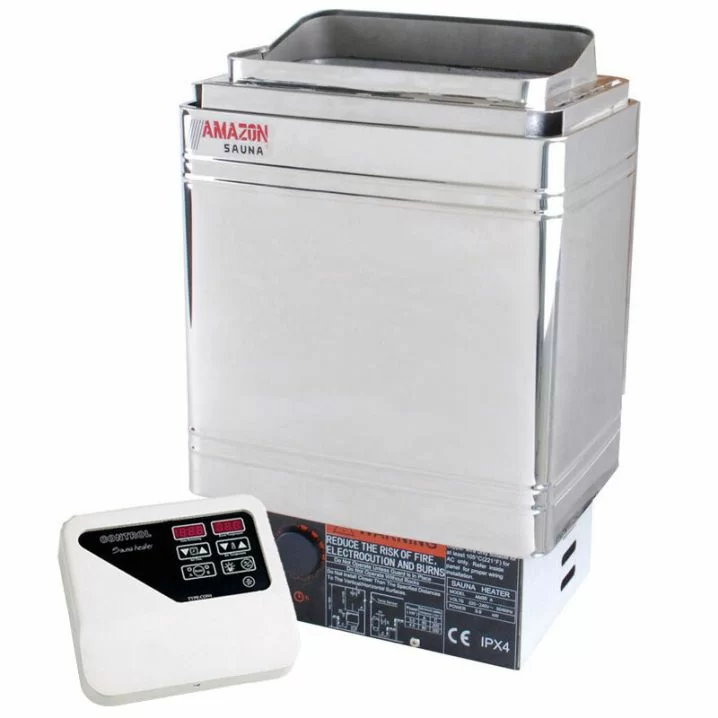 Електрокам’янка Amazon AM90MI-C (9 кВт) — надійне рішення для фінських саун об’ємом від 9 до 13 м³. Корпус із дзеркальної нержавіючої сталі AISI 430, захист від вологи IPX4, сертифікація CE та виносний пульт CON4 у комплекті забезпечують комфортне та безпечне користування.