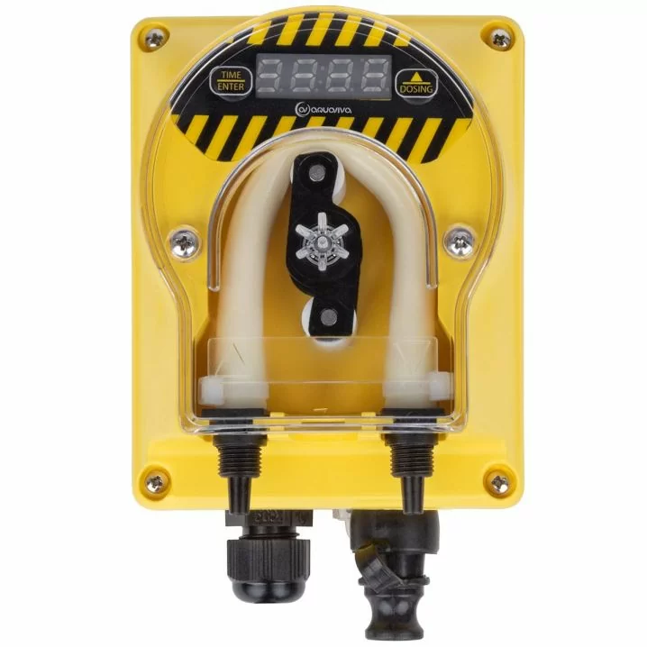 Цей насос забезпечує точне дозування хімії в басейн без участі людини, самостійно контролюючи концентрацію дезінфектанту для басейнів до 250 000 л.