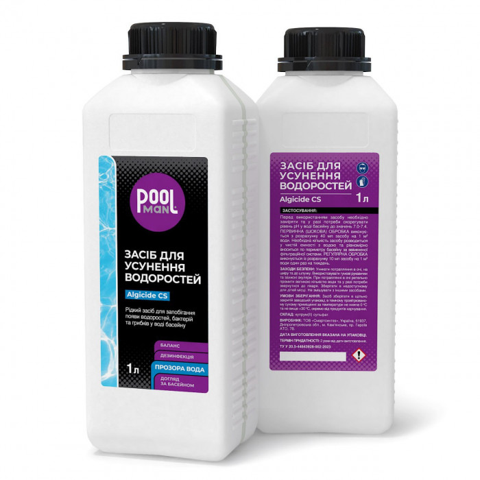 Призначення: Рідкий засіб для запобігання появи водоростей, бактерій та грибків у воді басейну.